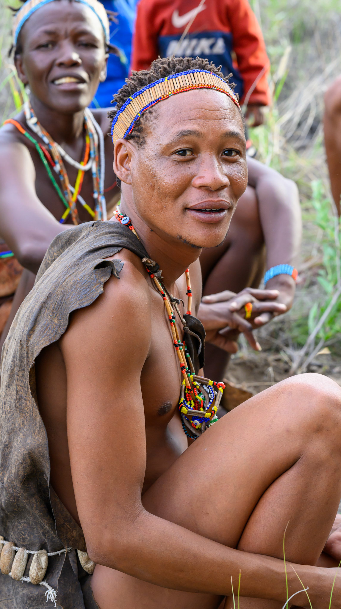 The San Bushmen of the Kalahari are VERY Special people. A most ancient civilisation with a strange 'clicking' in the way they speak. Evidence suggests that the San people are the oldest ethnic group on the planet, their nomadic hunter-gatherer culture dating back at least 20,000 years. We were invited to take a walk in the bush with them, during which they showed us their root and tuber gathering, how to make fire, the finer points of scorpion handling - and a most energetic game of skill and chance - the whole accompanied by huge smiles, gales of laughter and genuine friendship. The memory will last for ever.